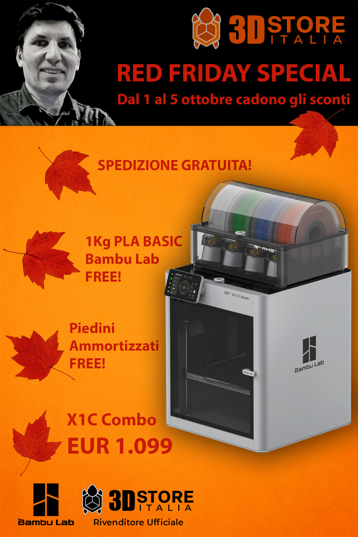 Prezzo di listino €1.099,00 EURPrezzo di listinoPrezzo unitario per€1.355,00 EURPrezzo scontato €1.099,00 EURBambu Lab X1C Carbon Combo