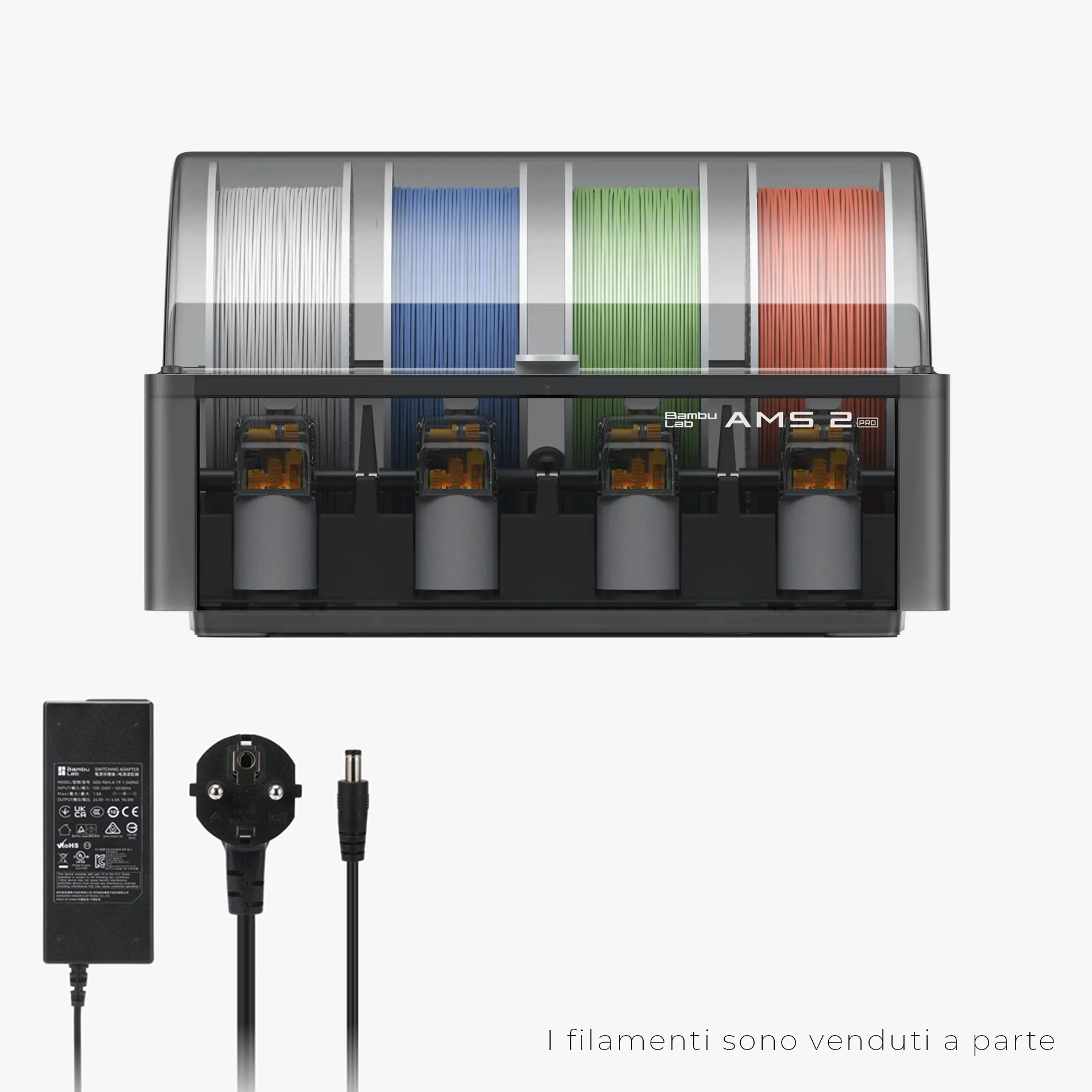 L'AMS 2 Pro è l'ideale per professionisti, maker e hobbisti che desiderano una soluzione automatica ed efficiente per alimentare il filamento, ottimizzare i tempi di stampa e ottenere risultati di alta qualità senza dover continuamente monitorare il processo.